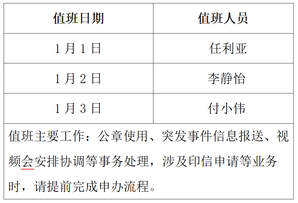 校长办公室2026年元旦值班安排