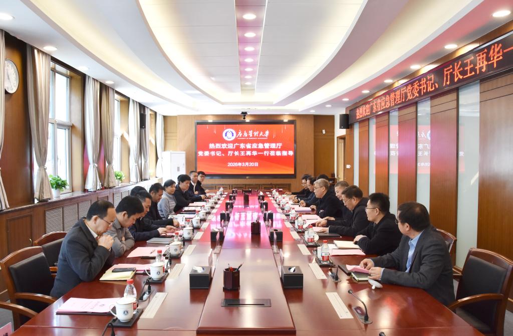 3月20日,广东省应急管理厅党委书记、厅长王再华,二级巡视员黄侦荣,广州市应急管理局党委书记、局长叶芳一行来校调研。学校党委副书记、校长任云生,党委常委、副校长洪利出席座谈会,学校相关职能部门和二级学院负责人参加座谈。